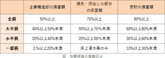 - 地震を原因とする津波により、地震保険の対象である居住用建物の流失した部分の床面積が、その建物の延床面積の70%以上となった場合、全損と認定される。
